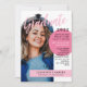 Convite de festa de formatura retrorreflector personalizado com uma foto em forma de arco no cobrir e uma segunda foto cobrindo o verso. Formando escrito em pincel cor-de-rosa através do convite de graduação. Cor rosa pálido e sotaque rosa. Na moda e convite para formatura feminina em rosa, branco e preto.