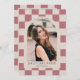 Nosso Convite para Graduação Retrospectiva Cheque apresenta um quadro de fotos de arco, fundo controlado e tipografia moderna. Personalize esse convite de formatura minimalista adicionando sua foto, seu nome, escola e outros detalhes. Este convite de graduação está disponível em outras cores. Fotos de prostooleh / Freepik.