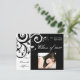 Anúncio de graduação em espiral preto e branco clássico e elegante, convite para festas de formatura ou convite para formatura. Perfeito para a garota com um estilo refinado. Folheto de design de rolagem com fundo preto e letra de script de rico branco. Personalize online com a sua fotografia e texto! designs © www.CustomInvitesOnline.com