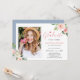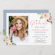 Convite Graduação de Foto Floral Azul, Cor-de-Rosa Esbranq