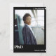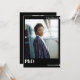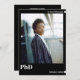 Um convite de festa de formatura de foto minimalista do doutorado com texto branco e fundo preto. O verso inclui os detalhes da festa de formatura e uma versão menor da foto do formando. Basta adicionar sua foto e informações, adicionar este convite ao seu carrinho e celebrar esta grande conquista. Licenciatura de PhD de Foto Minimalista classe de Design de Natal 2022 | ©Melissa Patton - Designer