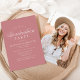 A festa de formatura Elegante convida a apresentar os detalhes da sua festa de formatura com a inscrição em script de caligrafia branca. O convite para festa de formatura poeirento para rosa inverte para exibir a foto de sangria do cheio do formando. O convite para festas de formatura de caligrafia é perfeito para segundos graus e formandos universitários!