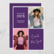 Este convite de formatura moderno e elegante apresenta fotos personalizadas do formando e pode ser personalizado para complementar suas cores escolares ou seu tema de graduação. Sacudir a placa e use as ferramentas design para atualizar com o texto.