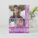 Adicione três fotos digitais a este bonito anúncio de graduação de aspecto brilhante roxo. Uma forma excelente de expressar a formando feminina e feminina em púrpura e branca de uva. Script de texto com seu nome na frente.
