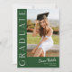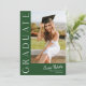 Este moderno convite elegante para a graduação de fotos em na moda apresenta uma foto vertical e um título com um nome de script personalizável e texto na frente. As costas têm um convite com os detalhes da festa. Uma forma excelente de mostrar seu formando. Clique no botão editar para personalizar este design.