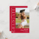 Este moderno convite elegante para a graduação de fotos em na moda apresenta uma foto vertical e um título com um nome de script personalizável e texto na frente. As costas têm um convite com os detalhes da festa. Uma forma excelente de mostrar seu formando. Clique no botão editar para personalizar este design.