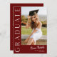 Este moderno convite elegante para a graduação de fotos em na moda apresenta uma foto vertical e um título com um nome de script personalizável e texto na frente. As costas têm um convite com os detalhes da festa. Uma forma excelente de mostrar seu formando. Clique no botão editar para personalizar este design.