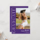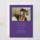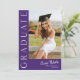 Este moderno convite elegante para a graduação de fotos em na moda apresenta uma foto vertical e um título com um nome de script personalizável e texto na frente. As costas têm um convite com os detalhes da festa. Uma forma excelente de mostrar seu formando. Clique no botão editar para personalizar este design.