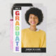 O convite à festa de formatura a cores do arco-íris personalizado com uma fotografia de cada lado do convite para comemoração da graduação. Formando anotado na lateral do convite em uma ombre arco-íris, uma cor por letra. Perfeito para uma adolescente LGBT se formando ou apenas uma adolescente que adora cores do arco-íris. Um convite à graduação colorida da tipografia moderna. Convite para graduação de tipografia no arco-íris e anúncio personalizado com fotos.