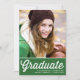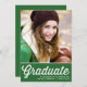Convide convidados para o seu evento com este convite personalizável para a graduação de fotos. Apresenta uma escrita retrorreflectora em negrito e tipografia clássica. Personalize adicionando seus detalhes. Este convite para a graduação verde também está disponível em outros estoques de papelão e cores.