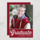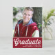 Convide convidados para o seu evento com este convite personalizável para a graduação de fotos. Apresenta uma escrita retrorreflectora em negrito e tipografia clássica. Personalize adicionando seus detalhes. Este convite para formatura de fotos vermelhas também está disponível em outros estoques de papelão e cores.