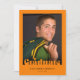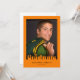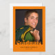 Este simples convite para a graduação de fotos apresenta a moderna tipografia retrô sobre a foto vertical. O plano de fundo é uma laranja em negrito com texto personalizado para o nome do formando, o ano e os detalhes do convite no verso.