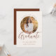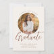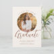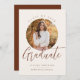Anúncio de Graduação de Fotos da Faculdade de Caligrafia do formando. Apresentando uma foto redonda marcadora de posição com "classe de" curvada sobre o topo e "formando" na caligrafia moderna. Este design combina terracota e matizes beges.
