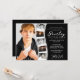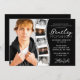Convite para Graduação de Fotos para Folha Moderna Preta e Branca 6. Inclui slots de fotos para 6 fotos.