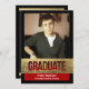 Crimson rico vermelho com quadro preto real e prestigioso com efeito de folha de ouro e recorte "Formando" perfeitamente adaptado ao nome do formando, escola e foto. A imagem impressa em folha de ouro é sofisticada e elegante por celebrar a grande conquista do formando masculino ou de qualquer um!