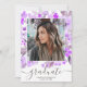 Lavanda púrpura moderna, roxo, floral, roteiro de formando de aquarela aberta, graduação de fotos em casa. Adicione 4 de suas fotos favoritas com uma elegante caligrafia de script e colagem de grade de fotos.