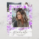 Lavanda púrpura moderna, roxo, floral, roteiro de formando de aquarela aberta, graduação de fotos em casa. Adicione 3 de suas fotos favoritas com uma elegante caligrafia de script e colagem de grade de fotos.