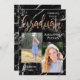 Cartão de Anúncio de Graduação de Foto do Marble Negro Moderno Elegante, com script de tom cor-de-rosa rosa, excelente para o formando anunciar a grande conquista. O mármore preto estático e negrito com veia branca exibe classe e elegância.