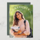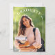 Este convite à formatura moderno e elegante apresenta uma elegante arca branca e uma fotografia do formando como fundo. Pode ser personalizado para complementar as cores escolares ou o tema da graduação. Sacudir a placa e use as ferramentas de design para adicionar seu texto e alterar a cor de fundo para corresponder ao esquema de fotos.