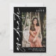 Convite para formatura em preto elegante personalizado com uma foto no cobrir e mais três fotos no verso. Convite de formatura de dupla face com fundo preto. 2 em 1 anúncio de graduação e convite personalizados com fotos e o nome do formando em branco.