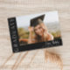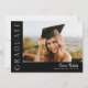 Este moderno convite elegante para a graduação de fotos em na moda apresenta uma foto horizontal e um título com um nome de script personalizável e texto na frente. As costas têm um convite com os detalhes da festa. Uma forma excelente de mostrar seu formando. Clique no botão editar para personalizar este design.