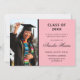 Um simples convite com a sua fotografia e os detalhes que a acompanham num fundo rosa