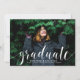 Comemore sua conquista com nosso convite à formatura em folha, projetado para comemorar seu dia especial. Apresentando uma camada de fotos moderna de caligrafia. Este elegante convite para a graduação permite que você mostre sua foto favorita de graduação em um layout bem trabalhado. Personalize adicionando seus detalhes. Disponível em vários cortes de papel e estoques de cartão para adequar-se ao que você está procurando. Quer você esteja formando segundo grau, faculdade, ou outro marco, este convite para a graduação de fotos é a forma perfeita de convidar seus entes queridos a compartilhar seu sucesso.