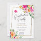 Saia no campo de formandos com este elegante convite para a graduação de tendências do roteiro moderno, com um bonito jardim pintado de flores cor-de-rosa e pêssego e folhas verdes com folhas de folha de ouro geométrica do quadro do terrário. Adicione sua foto em forma de arco no fundo.
