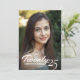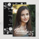 Este convite de formatura impressionante captura a alegria e a conquista da ocasião com um toque pessoal. A frente da placa apresenta sua foto favorita do formando, com o ano de graduação exibido elegantemente em um roteiro de pincel gracioso com o nome dos formandos mostrado abaixo. No verso, a placa tem um sofisticado fundo preto, bordado no topo e no fundo por uma borda floral branca querido que adiciona um toque de elegância do eterno. Adicione os detalhes do evento, fornecendo aos convidados todas as informações necessárias em um formato claro e na moda. Este convite equilibra perfeitamente a celebração pessoal e a elegância formal, fazer-o como um bem-estar apreciado para este acontecimento marco.