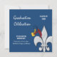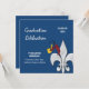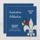 Celebre sua graduação com estes convites para festa de formatura de peixe-rastro azul-escura Fleur de Lis. A frente dos convites apresenta um saxofone tocando lagosta empoleirado em uma Fleur de Lis prateada sobre fundo azul profundo. As costas mostram um peixe-rastejante com um chapéu de graduação. Adicione seu texto sobre o plano de fundo de um Fleur de Lis. Personalize usando o modelo. Clique em "Personalizar" para fazer alterações na fonte e no posicionamento do texto.