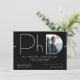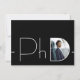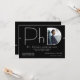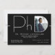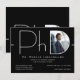 Um convite moderno para festa de formatura de doutorado com fundo preto e letras brancas. Celebre o seu doutorado com este convite para na moda. Basta adicionar sua foto e informações, adicionar este convite ao seu carrinho e celebrar esta grande conquista. Design de Natal de PhD para Graduação de Foto Branca Moderna | ©Melissa Patton - Designer