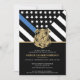 Honre a dedicação e o trabalho de duro de um novo oficial de polícia com este convite de formatura policial personalizável. Apresentando um crachá policial e a bandeira da polícia com riscas brancas e pretas e uma orgulhosa linha azul fina, esta design simboliza força, serviço e sacrifício. O convite é personalizado com o nome do formando em letras douradas, fazer-o como uma lembrança memorável para amigos, familiares e colegas oficiais. Perfeito para celebrar a graduação, promoção ou marco de uma academia de polícia na carreira de um futuro oficial. Convide seus convidados em estilo e mostre suporte para o membro mais novo da comunidade de linha azul fina.