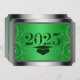 Um cartão verde e prateado convidando os apaixonados a honrar um formando maravilhoso em seu dia especial de celebração.