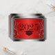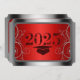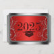 Um cartão vermelho e prateado convidando os apaixonados a honrar um formando maravilhoso em seu dia especial de celebração.