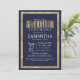 Convite Graduação de Sequência Dourada Azul de Marinho Mod