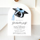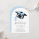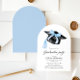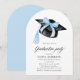 Comemore sua graduação em estilo e elegância com este convite moderno em forma de arco, com um arco azul-chic, um boné de formatura clássico e uma tipografia elegante. Perfeito para uma celebração de graduação moderna e sofisticada, este modelo editável é fácil de personalizar para impressão ou compartilhamento digital. Uma forma na moda e eterno de convidar convidados para o seu marco especial! 💙 🥂