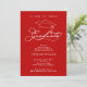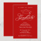 Um boné de formatura e a palavra "formando" em um roteiro elegante e branco PLUS o nome e o ano do seu formando e suas informações sobre esses convites para festas de formatura vermelha escarlate. CONSULTE TODA A RECOLHA de cores pré-feitas, placas de papel, guardanapos, tampas de bonés de formando e muito mais em nossa loja.