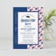 Convite de graduação patriótico mostrando o esboço do mapa dos ESTADOS UNIDOS. Plano de fundo azul simples com GRADUAÇÃO em sutil padrão. O texto do marcador de posição é personalizável, portanto, simplesmente adicione seu nome e detalhes. Parte da coleção GRADUATION de Designs Bereanos.