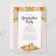Um convite à festa de formatura floral cor-de-rosa-claro e laranja.