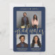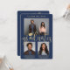 É uma festa de formatura dupla! Anuncie a conquista de dois formandos e convide a família e os amigos a celebrarem com convites para fotos em azul e ouro de festa de formatura comum. As imagens e o texto são simples de personalizar, e as cores podem ser personalizadas usando a ferramenta design Zazzle. Observe que o ouro é impresso a cor, não a folha metálica. (DICA DE IMAGEM: Uma maneira fácil de posicionar uma foto exatamente como você deseja é recortá-la antes de carregá-la no site do Zazzle.) Este modelo é uma placa de lançamento combinada na parte frontal com o convite de festas formando na parte traseira. O marinho azul e dourado moderno apresenta caligrafia de script de estilo manuscrito com um boné de conselho de argamassa, tipografia clássica elegante e três fotos de sua escolha, como fotos de mais velho ou imagens da cerimônia de início. Este convite de formatura é uma forma na moda para anunciar uma celebração especial para dois formandos, como irmãos, melhores amigos, primos, gêmeos, irmão e irmã, etc. Parabéns para ambos os formandos!