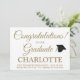 Parabéns para nosso formando personalizado script elegante anúncio de graduação / convites. Texto em ouro falso totalmente personalizável, fundo branco sólido e plano de fundo. Com um boné de formatura por cima. Sinal de tipografia moderna elegante, excelente para crianças e adultos. Esses cartões são excelente para o anúncio de graduação, convite para o dia de graduação, festa de formatura etc. Personalizáveis para o jardim de infância, o ensino básico, o ensino médio, o segundo grau e a faculdade. Você pode personalizá-lo e torná-lo único.