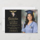 Um delicado arranjo botânico de cor d'água de rosas roxos e verde com borrifadores de ouro macio (isto é um efeito digital, não uma folha de ouro real), assim como um caduceus dourado são as elegantes decorações para este simples, clássico, moderno convite para a graduação em enfermagem com fotografia, que você pode personalizar e modificar completamente com o nome da escola, a graduação etc. A grande área de modelo permite muito espaço para incluir a localização da cerimônia de graduação e uma celebração depois, ou personalizá-la simplesmente com os detalhes da festa de formatura.