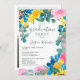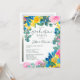 Festa de formatura floral, cor-de-rosa-rosa, russa, de 2023, com girassóis azuis amarelos pintados, rosas cor-de-rosa, eucalipto verde-sábio a rosa editável.