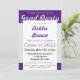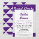 A Formatação em Negrito do Partido do Formando Prateado é cheio do espírito escolar e feminilidade ousada. Comemore o segundo grau ou formandos com este convite para na moda. Apresenta cores prateadas e roxas da escola, emparelhadas com letra de escrita feminina.