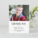 Este cartão com fotos de graduação moderno apresenta uma simples tipografia e uma grande foto. Uma foto horizontal do formando está no topo, com a palavra "Formando" escrita em letra maiúscula de tendência abaixo. Por baixo da tipografia, adicione o nome do formando na caligrafia, com a escola e o ano de graduação no fundo do cartão. A tipografia é preta contra fundo branco. A parte traseira da placa de graduação inclui um modelo opcional para adicionar detalhes da festa de formatura.