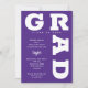 FORMANDO em curvas de letras brancas em negrito ao redor das bordas desses convites de festa de formatura de fundo roxo. CONSULTE TODA A COLEÇÃO de combinações de cores pré-feitas, placas de papel, guardanapos, caixas de favor e convites de festa de formatura em nossa loja.