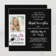 Engraçado convite de festa de formatura na sua escolha de cores com o ditado BEIJA MINHA CLASSE GOODBYE na tipografia moderna e na foto de seu formando. A cor preta do fundo pode ser alterada para uma cor escolar ou para a cor personalizada. Este convite também está disponível como download de arquivos digitais para compartilhamento online ou via mídia social. ASSISTÊNCIA: Para obter ajuda sobre modificação/personalização do design, alteração de cor, transferência do design para outro produto ou se você quiser coordenar itens, entre em contato com o designer ANTES DE PEDIR por meio do Zazzle Chat ou makeitaboutyoustore@gmail.com.