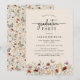 Convite de Graduação Floral Boho. Este convite de festa de graduação elegante e sofisticado apresenta belas flores silvestres pintadas à mão em aquarela, dispostas como um lindo buquê e uma caligrafia elegante. O verso inclui um belo padrão coordenado. Encontre produtos correspondentes na Coleção de Graduação Boho Wildflower.
