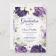 O convite para festa de formatura de uma adolescente floral branca e roxa elegante. O texto é personalizável, então faça dele seu. Entre em contato conosco para obter ajuda com a personalização ou para solicitar produtos correspondentes.