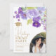Classe de graduação floral de lavandas roxas de jardim bonito de 2024, com ilustrações florais roxas e lavandas pintadas a negrito e com folhas verdes, com uma elegante e moderna letra de escrita de pincel. Adicione 2 fotos.